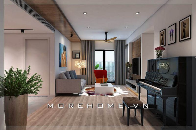 Trang trí không gian phòng khách căn hộ chung cư hiện đại đẹp.