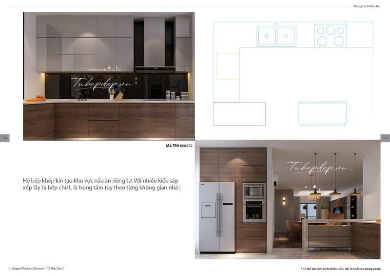 Mẫu tủ bếp gỗ công nghiệp hiện đại, thiết kế chữ L đơn giản cho phòng bếp chung cư