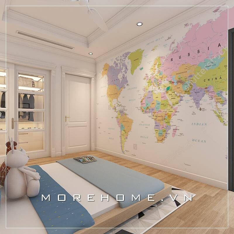 Giường ngủ con trai được thiết kế theo phong cách hiện đại, dạng bệt đơn giản, tiện nghi đồng thời giúp không gian sinh hoạt rộng và thoải mái hơn