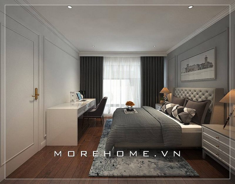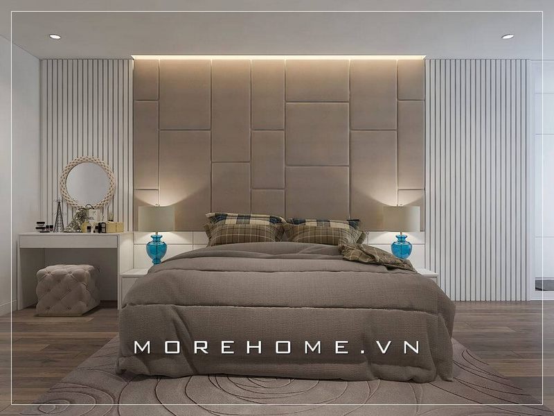 Mẫu thiết kế nội thất phòng ngủ chung cư hiện đại đáp ứng được xu hướng hiện nay. Với gam màu trung tính, nó tạo nên một cảm giác thoải mái và thư giãn nhất.